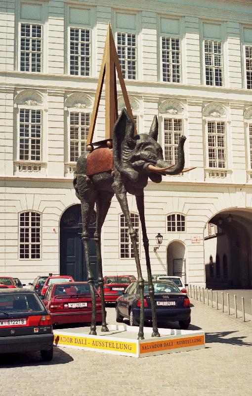 Vídeň-Salvador Dalí: plastika \"Slon s pavoučíma nohama\"