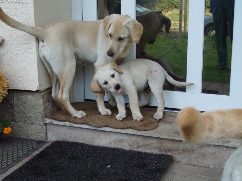 labroušek Charlí vyplazuje jazyk-Charlík je na návštěvě u holek Sáry a Agáty(Agátka se divý, proč Charlí vyplazuje jazýček)